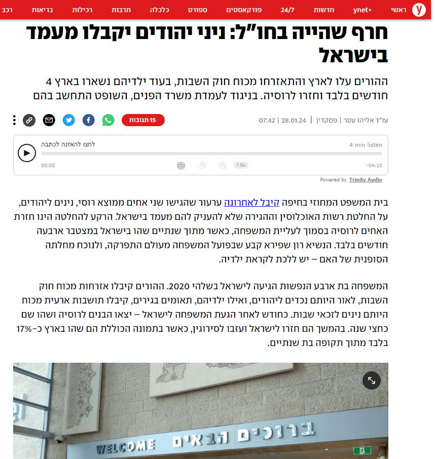 פורסם באתר YNET בתאריך 28.1.2024